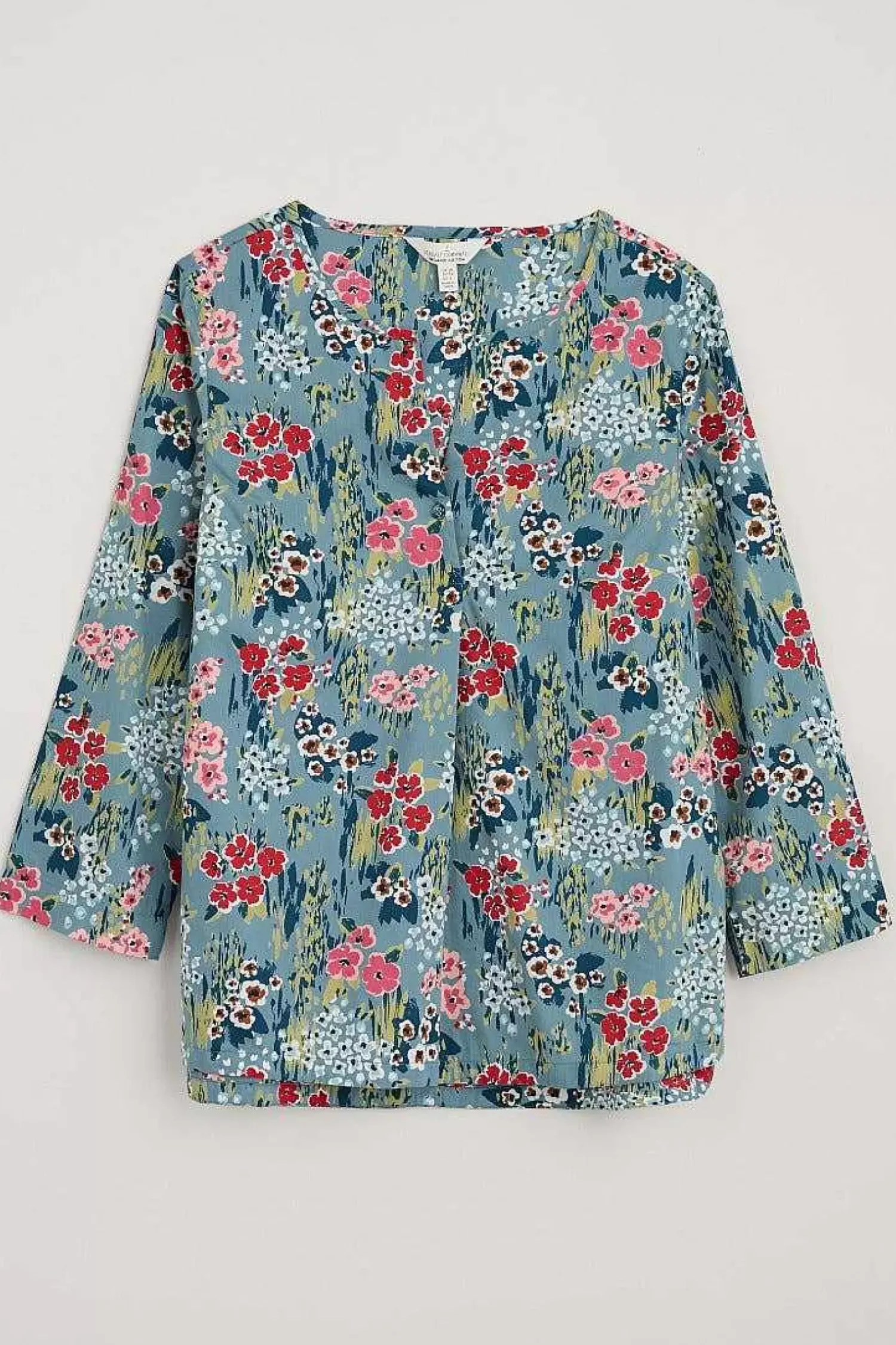 Tops<Seasalt Cornwall Watercolour Sketch 3/4 Sleeve Top (Gots) Painterly Field Wade
