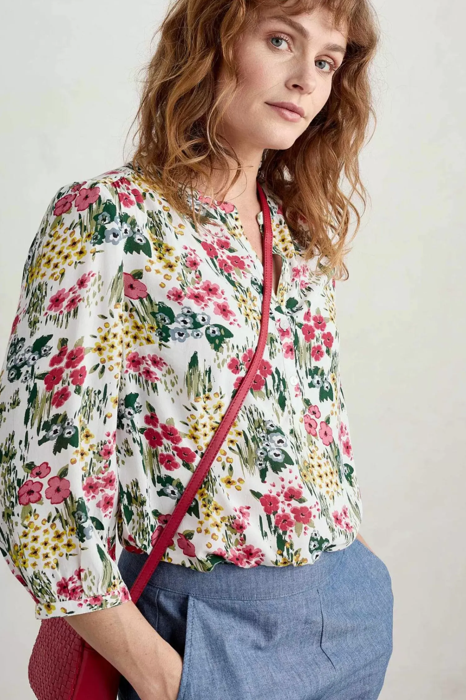 Tops<Seasalt Cornwall Willow Path 3/4 Sleeve Printed Shirt Painterly Field Chalk