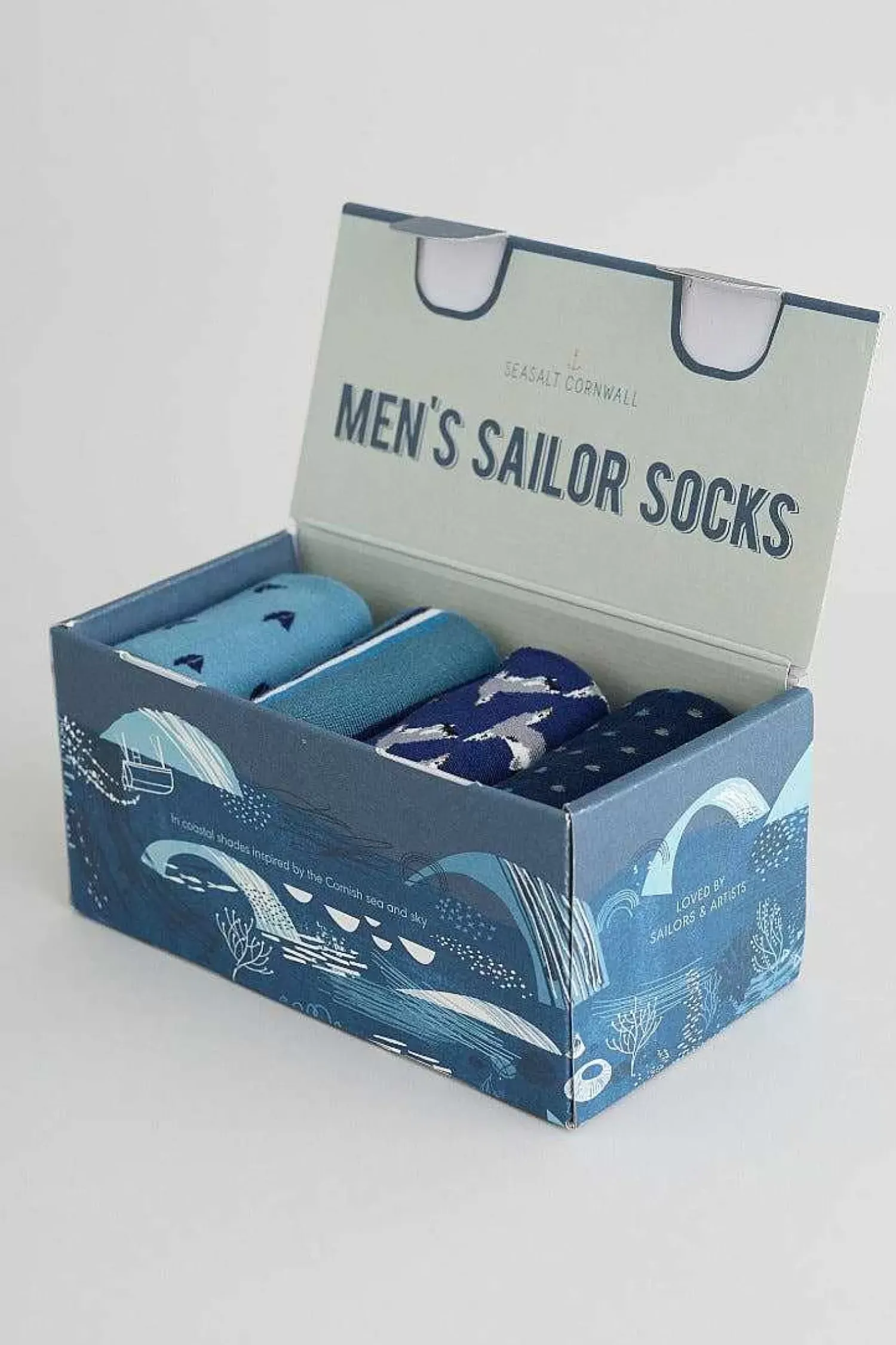 Socks<Seasalt Cornwall Men's Step Into The Blue Socks Box Of 4 Incoming Tide Mix