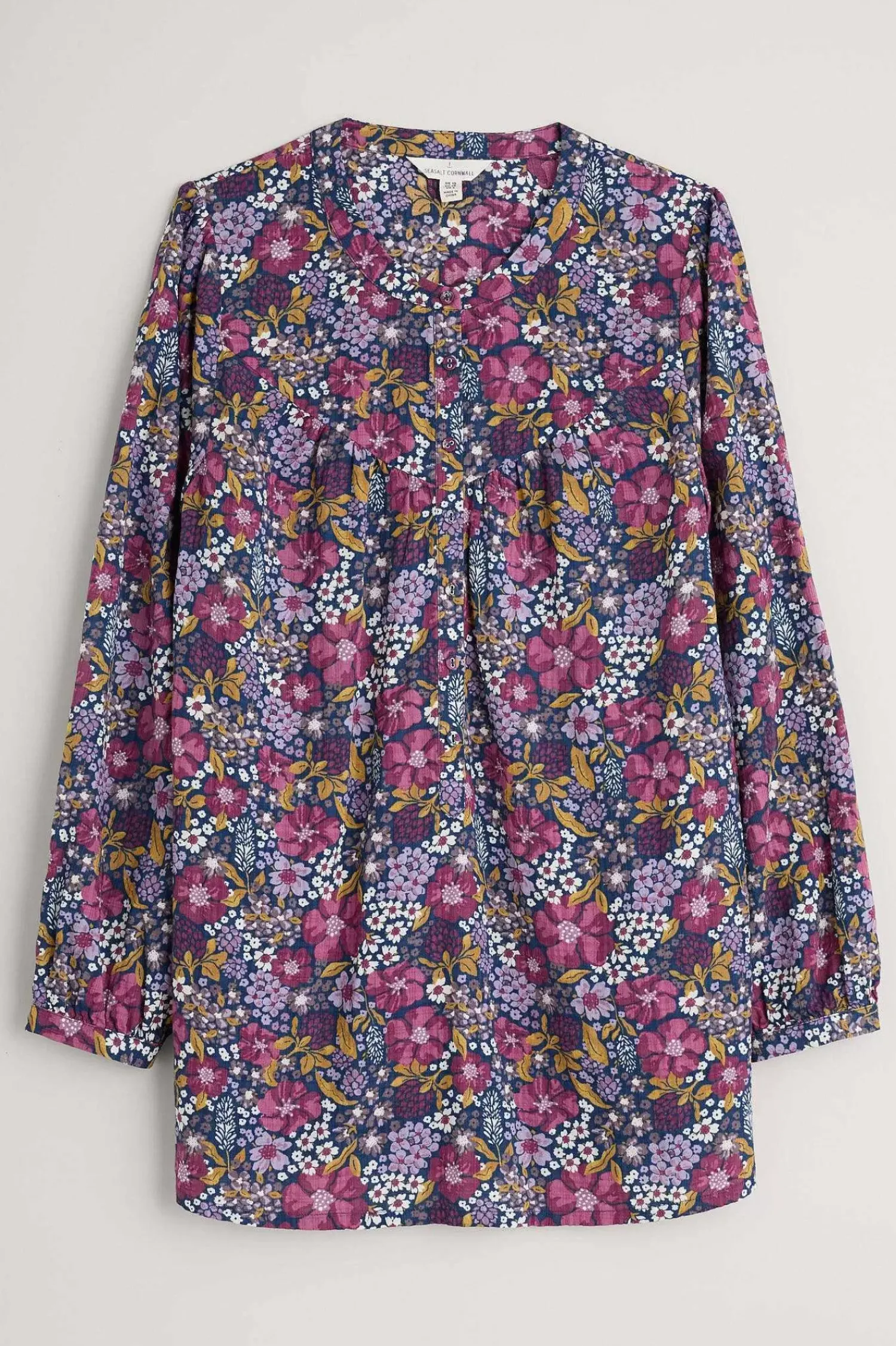 A Skimming Top With A Button-Down Front, Soft Gathers Under The Front And Back Yoke And Subtle Blouson Sleeves, Giving A Lovely Movement And Volume To Ditsy Floral Prints Inspired By Cornish Meadows. We Love It With A Simple Vest And Narrow Crops For Summer.